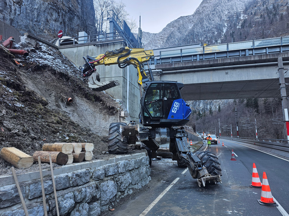 Wir sind Ihr Profi für Schreitbaggerarbeiten, Kommunalarbeiten, Landschaftspflege, Bohrarbeiten am Steilhang und Wildbachräumungen.